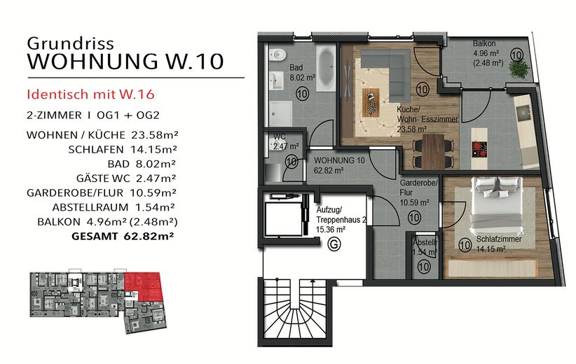 Barrierefreier Neubau mit 62,82 qm Netto-Wohnfläche, großer Balkon 4,96 qm mit Sicht zur Straße, sowie schöne Helle Räume, ein luxuriöser Bad sowie ein Gäste WC gibt der Wohnung ein Charme. Ein Tiefgaragenstellplatz gehört zur Wohnung.