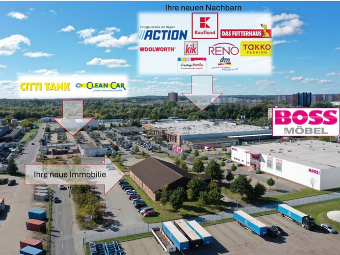 Die unmittelbare Umgebung ist geprägt von einem vielfältigen Branchenmix aus Einzelhandel, Handwerksbetrieben, Dienstleistungsunternehmen und Nahversorgern was für eine stetige Kundenfrequenz sorgt. Direkt angrenzend befinden sich mehrere großflächige Einzelhandelsmärkte sowie gastronomische Einrichtungen und medizinische Versorgungsangebote. (CITTI-PARK: Kaufland, Action, Das Futterhaus, Woolworth, Takko Fashion, RENO, dm, Ernsting's family, Little John Bikes, KiK, Junge die Bäckerei, kkiosk, OstseeSparkasse, CITTI TANK, Clean Car, KLINCK Dein Friseur)