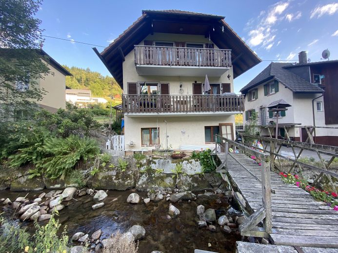 Am Ortseingang von Malsburg gelegen, dadurch eine gute Anbindung an Kandern. Idyllisch mit Bach hinterm Haus, einem großen Gartengrundstück und Blick ins Grüne von der Terrasse und den Balkonen.