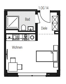 Diese hochwertig ausgestattete, vollmöblierte 1-Zimmer-Neubauwohnung überzeugt mit einem durchdachten Grundriss auf ca. 25,72 m² Wohnfläche und bietet modernen Wohnkomfort auf kompakter Fläche – ideal für Singles oder Pendler.