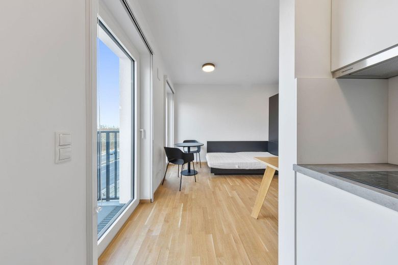 Moderner Neubau: mit Anmeldung in ein Microapartment. Aufzug in die 2. Etage, Videogegensprechanlage, Parkettboden, Fußbodenheizung, Einbauküche und Duschbad. Moderne Möbel inbegriffen. Mindestmietzeit beträgt 1 Jahr. Der Mietvertrag ist unbefristet. Hunde und Katzen nicht erwünscht.
