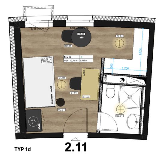 2.11: möbliertes Apartment für 1 Jahr oder länger