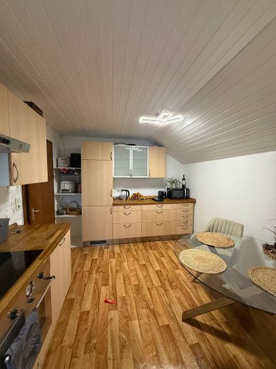 2 Zimmer DG-Wohnung mit 59 qm Mietpreis kalt 890 ,--€ frei. Diese Wohnung ist vom Grundriss größer ,aufgrund der Dachschrägen aber mit 59 qm bewertet. Sie haben ein Schlafzimmer, ein Wohnzimmer, eine abgetrennte Küche in die noch ein Esstisch passt ,ein Badezimmer mit Waschmaschinenanschluss.