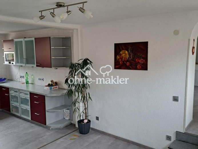 Eine zentral gelegene, modern ausgestattete Einbauküche und Essbereich, die von beiden Wohneinheiten genutzt wird