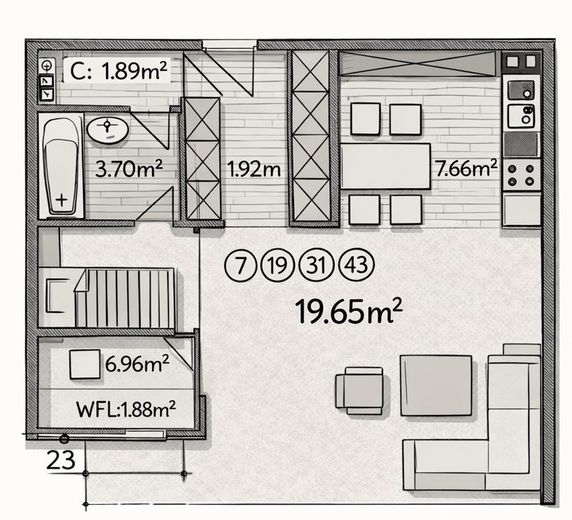 Der durchschnittliche Kaufpreis für Wohnungen in der Umgebung liegt bei ca. 3.500 €/m², während dieses Objekt für ca. 1.900 €/m² angeboten wird – ein deutlicher Abschlag von rund 45 %.