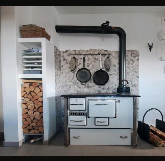 - Holz- Kochherd, extra Kaminofen- Anschluss