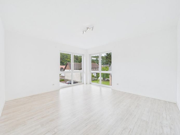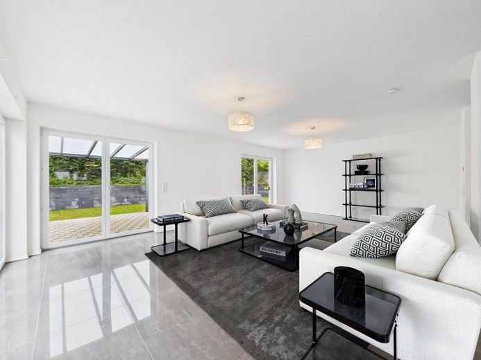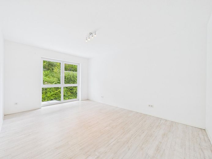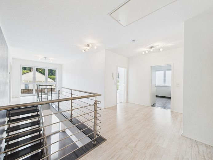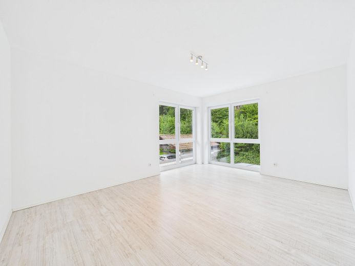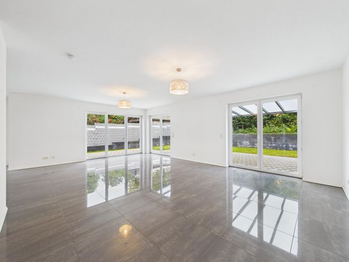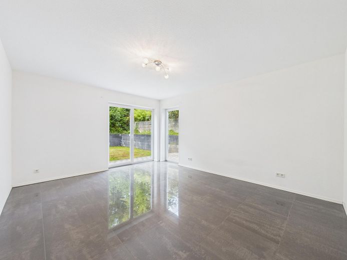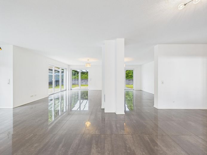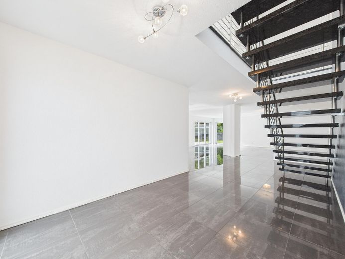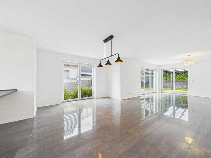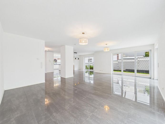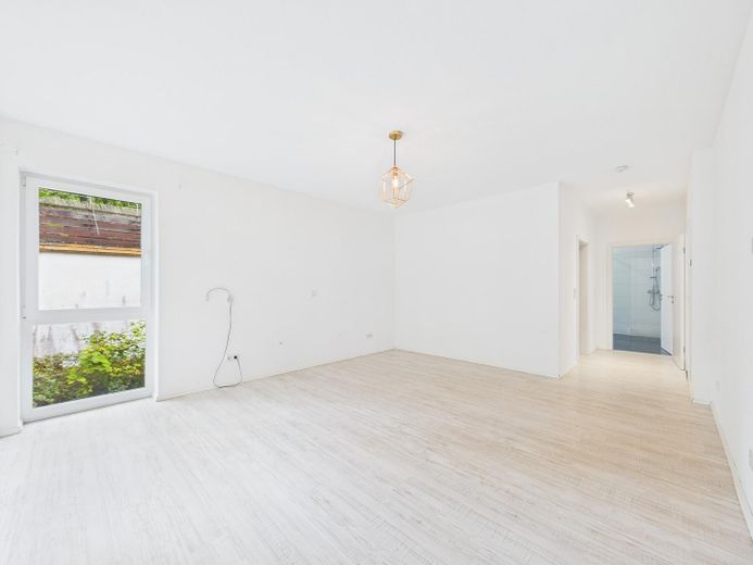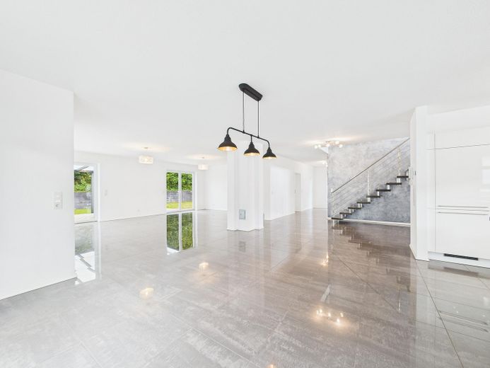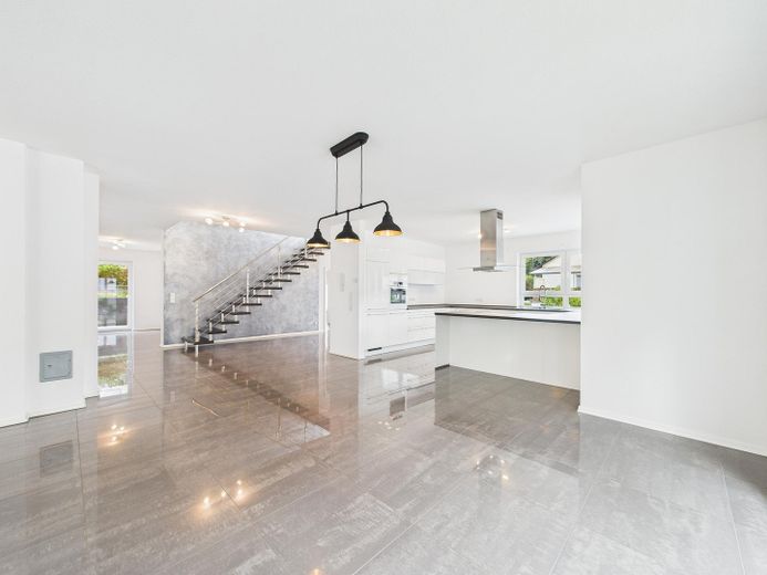 Wohnatmosphäre: Helle, offene Raumgestaltung mit klaren Linien und neutralem Farbkonzept und der Möglichkeit durch eine bereits vorhandene Vorrichtung einen Kamin nachzurüsten.