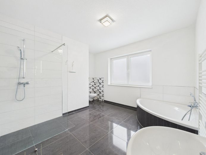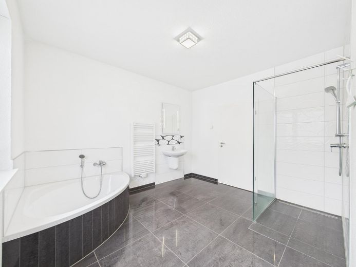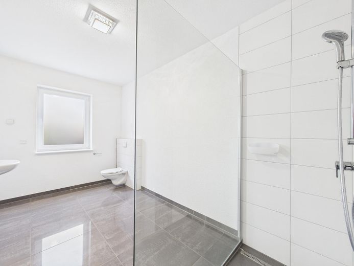 Bäder: Zeitlose Gestaltung, bodengleiche/begehbare Duschen in allen Bädern
