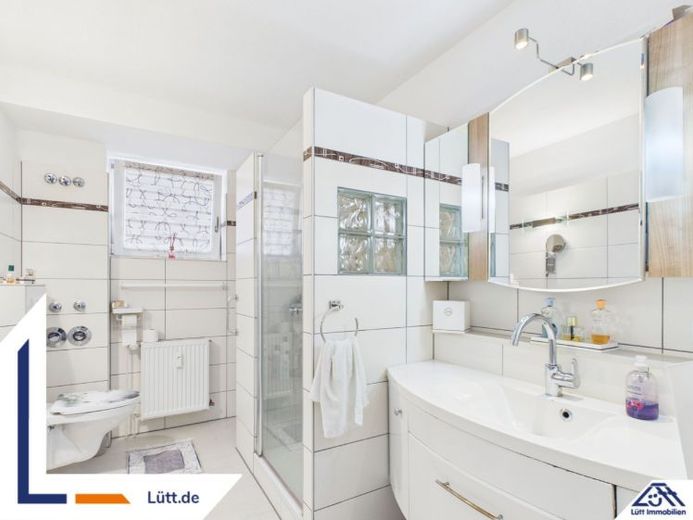 Ein Wort zur Lage der Wohnung im Sockelgeschoss: Das Wohnhaus ist in einen Hang hinein gebaut worden. Durch den Abstand zum Hang und der nach Süden hin liegenden Terrasse und Fenster der beiden Wohnräume gelangt viel Tageslicht hinein. Küche, Badezimmer und der zusätzliche Raum liegen im rückwärtigen Bereich und verfügen über kleinere Fenster.