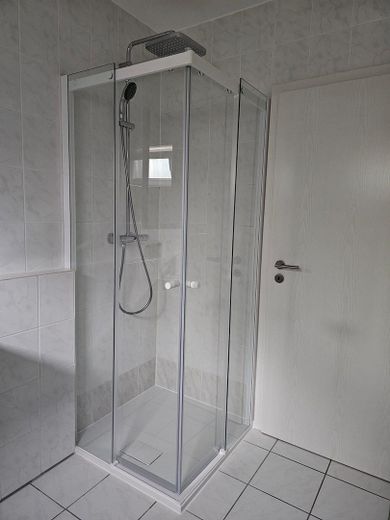 Zwei moderne Tageslicht-Badezimmer, eines mit Dusche, eines