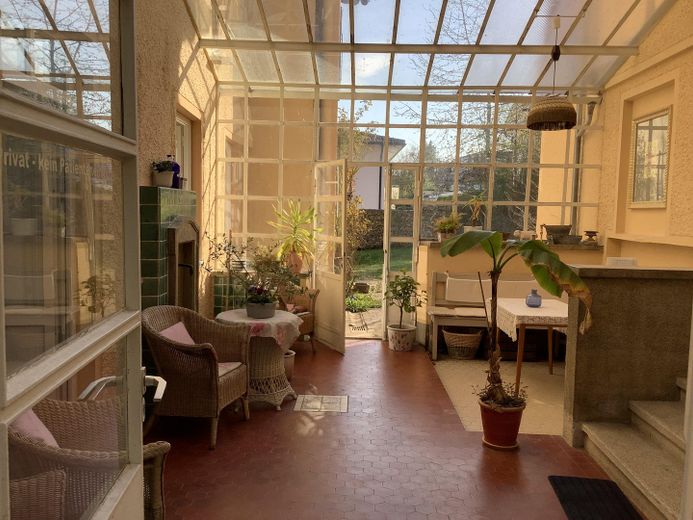 Insgesamt sind es drei attraktive Zimmer im Altbau-Charme. Zwei Zimmer sind über eine Zwischentür miteinander verbunden. Das dritte Zimmer hat eine kleine neue geschmackvolle und dezente Küchenzeile. Von diesem Zimmer hat man Zutritt zu dem historischen Glashaus, in dem man auch verweilen kann.