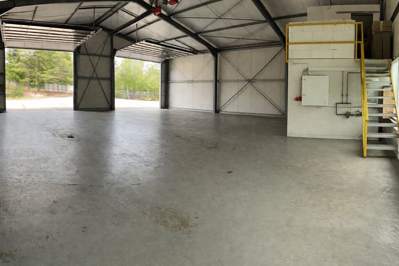 Die Halle verfügt über eine Deckenhöhe von ca. 5,0 m, zwei Hallentore (je ca. 4,5 × 4,25 m) sowie einen versiegelten, öl- und betriebsbeständigen Betonboden. Die Gebäudehülle ist mit isolierten Sandwichpaneelen gedämmt.