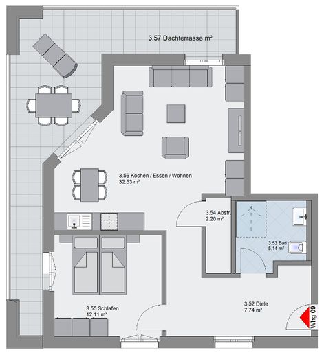 Im obersten Geschoss des Hauses erwartet Sie ein echtes Highlight: Wohnung 09 vereint stilvolles Design, durchdachte Raumaufteilung und eine beeindruckende Dachterrasse – perfekt für alle, die das Besondere suchen.