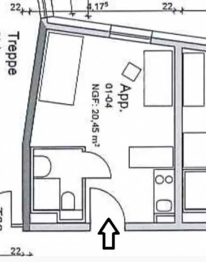 Das hier angebotene Apartment liegt in Westausrichtung zum ruhigen Innenhof. Es ist mit einer kleinen Küchenzeile inkl. Kochfeld und Kühlschrank ausgestattet. Das Bad ist modern gestaltet mit bodenebener Dusche und Handtuchheizkörper.