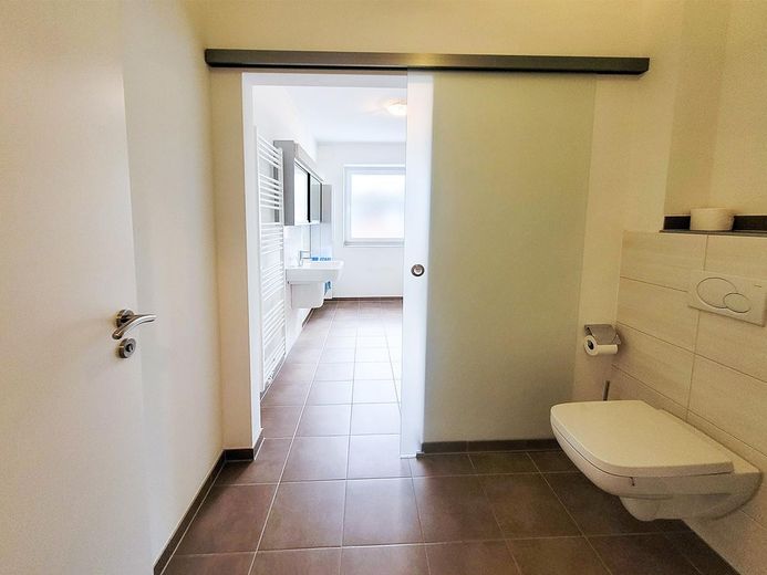 Das helle große Badezimmer ist modern ausgestattet und lädt zum Entspannen ein. Ein besonderes Highlight der Wohnung ist der große, südlich ausgerichtete Balkon. Zudem gehört zu dieser Wohnung ein Stellplatz und ein Kellerraum.