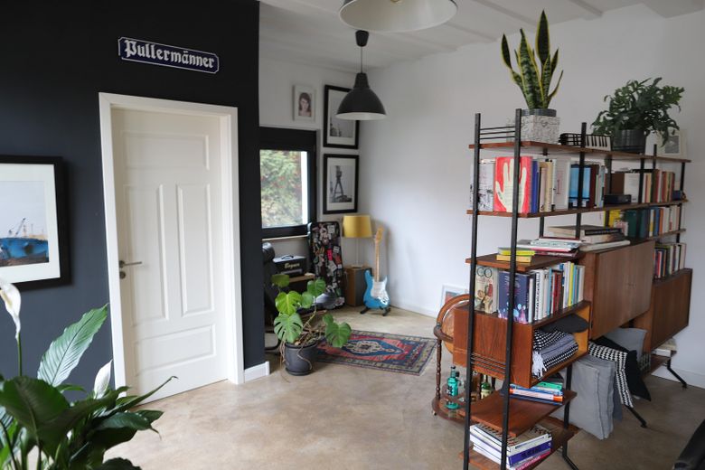 Das Haus selbst ist ein umgebautes Loft mit beeindruckender Raumwirkung: ein über 100 m² großer Wohn-/Ess-/Kochbereich mit 3 m Deckenhöhe, sieben 1,80 m hohen Fenstern mit nordwestlicher Ausrichtung und Sichtestrich. Der offene Grundriss, die Betondecke und die große Fensterfront schaffen ein helles, modernes Wohngefühl. Die offene Küche ist neu (2024) und fügt sich perfekt in das Konzept ein. Der wasserführende gusseiserne Kaminofen von Nordica (2014) sorgt für besondere Atmosphäre und unterstützt effizient die Wärmeversorgung.