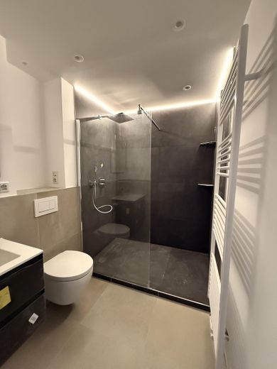 Das Badezimmer ist vollständig neu gestaltet und verfügt über eine moderne, begehbare Dusche. Zusätzlich sind im Bad sowie im Flur elegante LED-Spots verbaut.