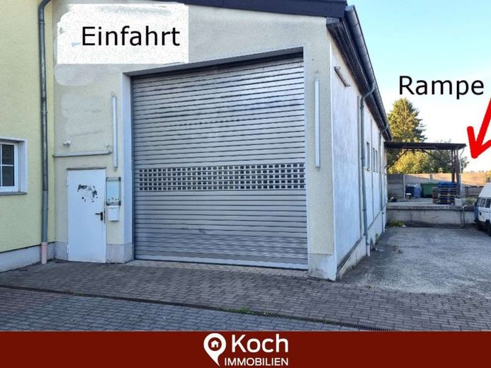 Hier wird eine Teilfläche einer ebenerdigen Halle mit LKW-Rampe vermietet.