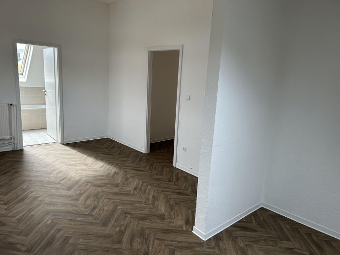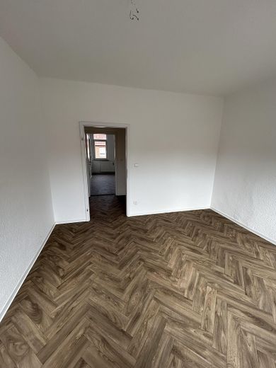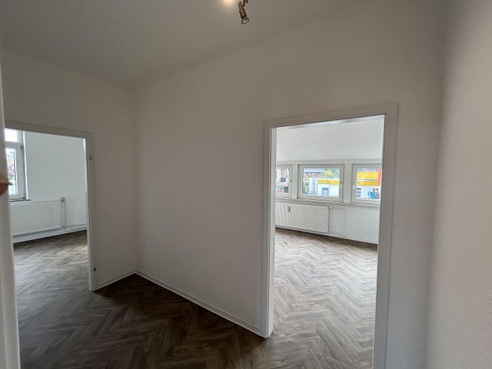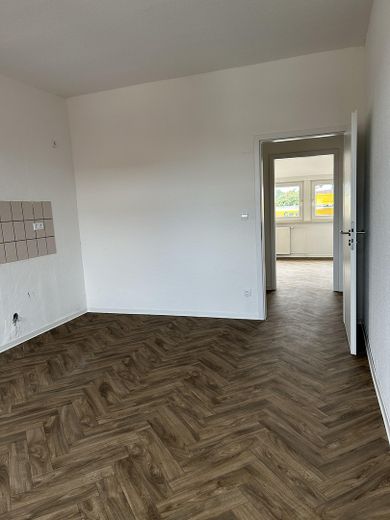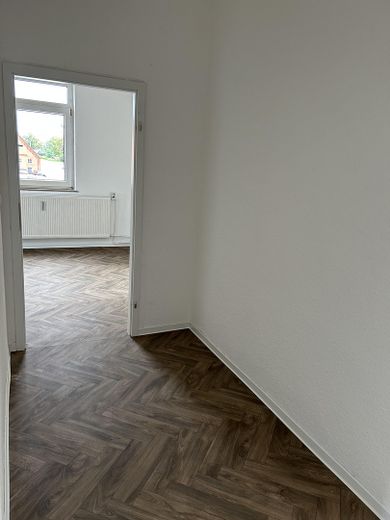 Die Wohnung wurde frisch renoviert: neue Türen mit Türzargen, Türgriffe, Steckdosen + Schalter, frisch tapezierte und gestrichene Raufasertapete, sowie neuer Venylboden mit Leisten runden das Gesamtbild ab.
