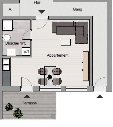 Modernes Apartment mit Terrasse und Garten. Die Wohnung kann ab sofort bezogen werden.