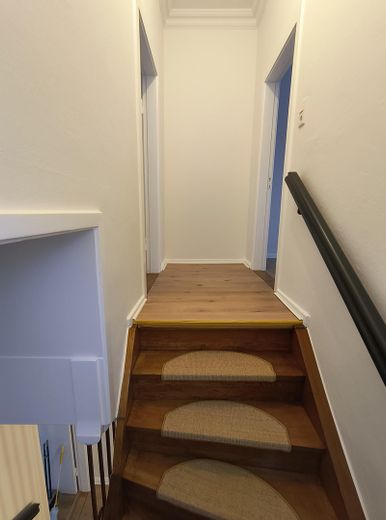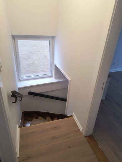Die Wohnung erstreckt sich über zwei Etagen. Das ganze Haus hat im letzten Jahr wunderschöne neue Fenster bekommen - an der historischen Vorderseite sogar mit Stichbögen in Glas.