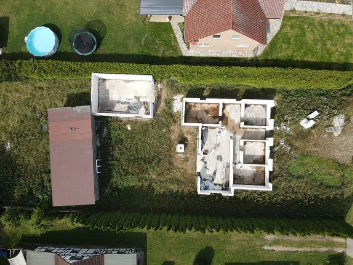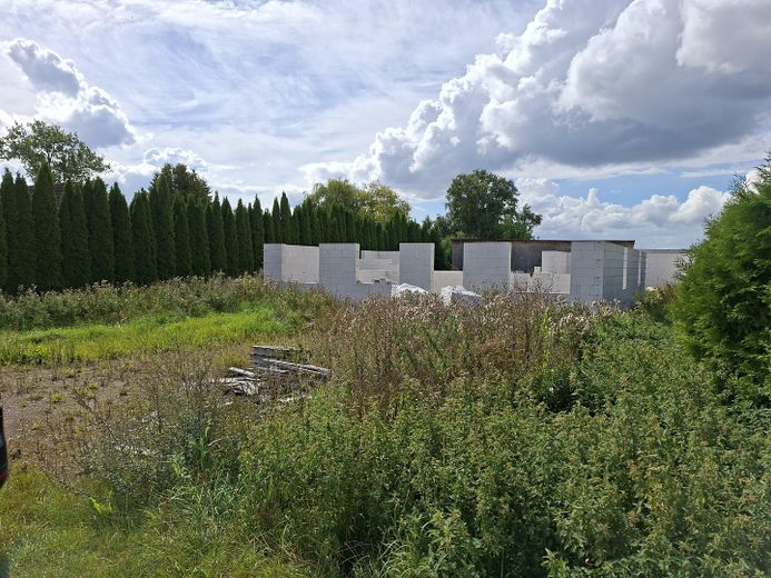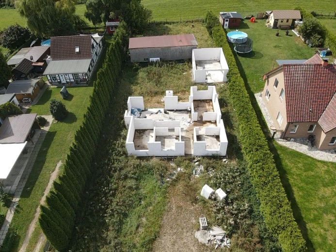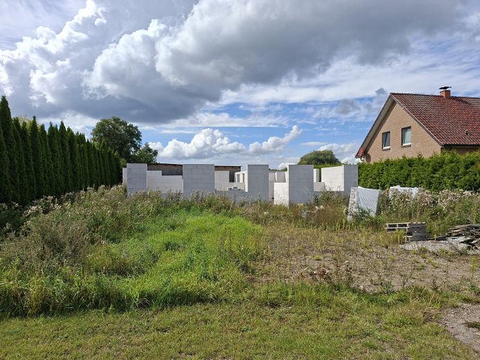 Großes Grundstück mit fast fertiggestellten Rohbau, Typ Bungalow und Garage.