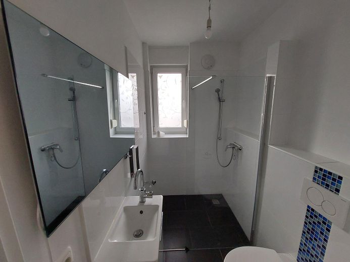 Bäder im Erdgeschoss mit ebenerdigen Duschen und Wanne bzw. Heizspiegel