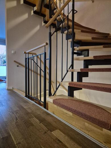 Das ist in dieser großzügigen Doppelhaushälfte von 2011 in einer ruhigen Neubausiedlung am Waldrand in Hamburg-Heimfeld, Realität. Die Häuser in der Nachbarschaft bestehen aus Reihen- und Doppelhäusern und die Bewohner sind Familien mit Kinder in allen Altersklassen.