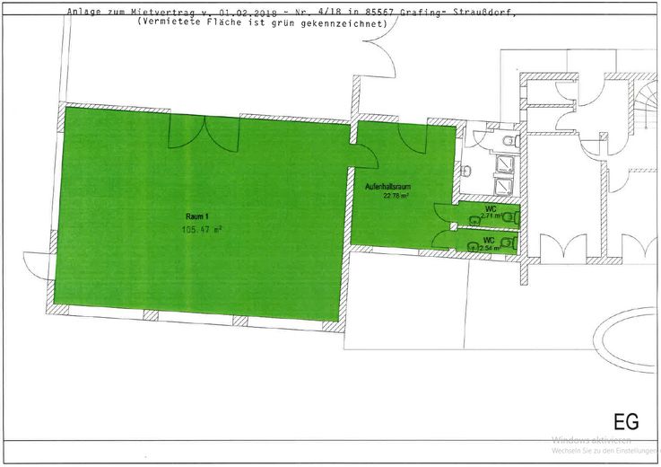 Diese vielseitig nutzbare Gewerbefläche befindet sich im Erdgeschoss eines Gebäudes im charmanten Bauernhaus-Stil aus dem Jahr 1972. Das ehemalige Gymnastikstudio bietet dank seiner offenen Raumstruktur und des freundlichen Ambientes zahlreiche Nutzungsmöglichkeiten – von Büro- oder Schulungsräumen über Atelier- oder Hobbywerkstatt bis hin zu Lagerzwecken.