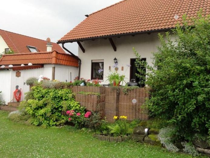 Auch im Außenbereich setzt sich die Qualität fort: Eine gepflasterte Zufahrt führt zu einer massiven Garage und einer Werkstatt. Gepflegte Rasenflächen und blühende Beete umrahmen das Haus und schaffen eine einladende Atmosphäre.