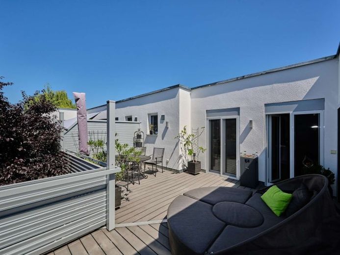 Die Ausstattung entspricht einem gehobenen Standard: Eine Fußbodenheizung sorgt in allen Wohnräumen für angenehme Wärme. Das Tageslichtbad ist mit einer freistehenden Badewanne, einer bodentiefen Dusche und hochwertigen Armaturen ausgestattet. Ein separates Gäste-WC rundet den funktionalen Komfort ab.