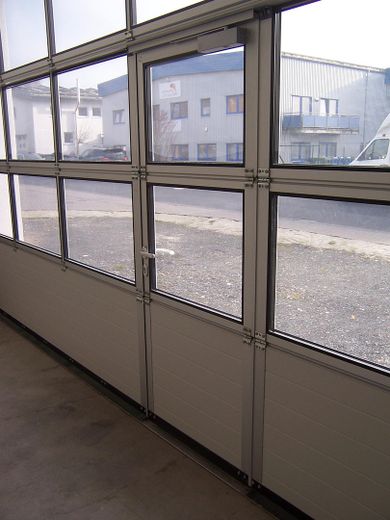 Die Deckenhöhe beträgt 5,70 m UKB und die Halleneinfahrt eignet sich durch ein großes Sektionaltor (Maße 5,00 m breit x 5,00 m hoch) auch für größere Fahrzeuge.