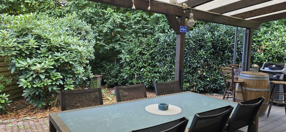 • eine direkt am Haus, überdacht und mit Seitenmarkisen