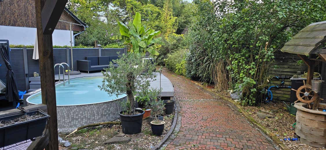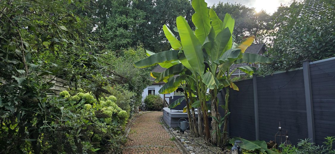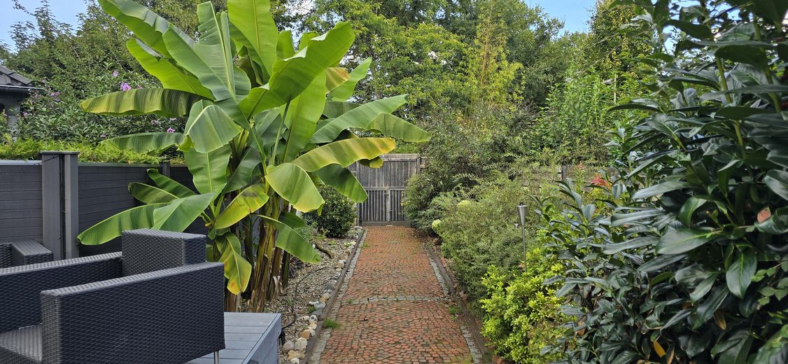 Der liebevoll und pflegeleicht angelegte Garten verfügt über: