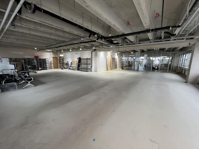 Die Fläche überzeugt durch einen offenen, stützenarmen Grundriss, sehr hohe Decken mit sichtbarem Betontragwerk und raumhohe Fensterfronten auf drei Seiten. Dadurch entsteht ein extrem helles, luftiges Raumgefühl mit tollem Ausblick in die Umgebung - eine sehr gute, neutrale Basis für einen maßgeschneiderten Ausbau.