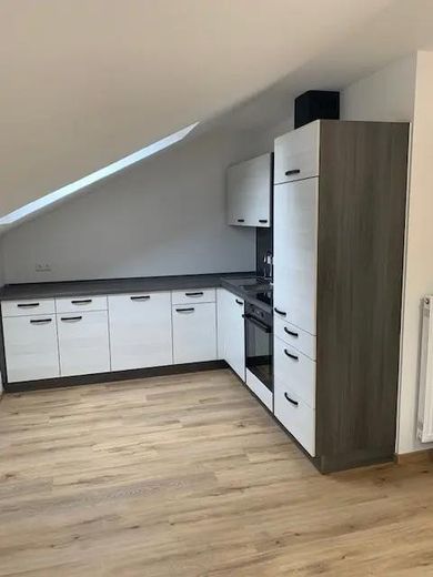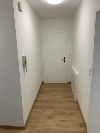 Diese ca. 50 m² große Wohnung bietet eine praktische Raumaufteilung mit zwei Schlafzimmern, einem hellen Wohnzimmer sowie einer Küche mit moderner Einbauküche. Die Räume sind mit pflegeleichtem Boden ausgestattet und wirken durch die weißen Wände freundlich und einladend.