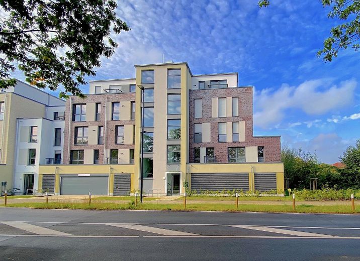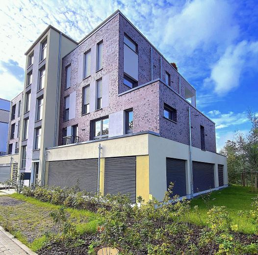 . Barrierefreiheit durch Gangbreiten, Bedienelemente, begehbare Dusche, Fahrstuhlanbindung. Auf Wunsch können bis zu zwei ebenerdige überdachte Stellplätze im Haus hinzu gemietet werden