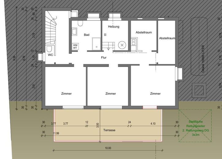 - Eigener Wald auf der Hälfte der Grundstückfläche (Hanglage) darf bei Bedarf gefällt werden.