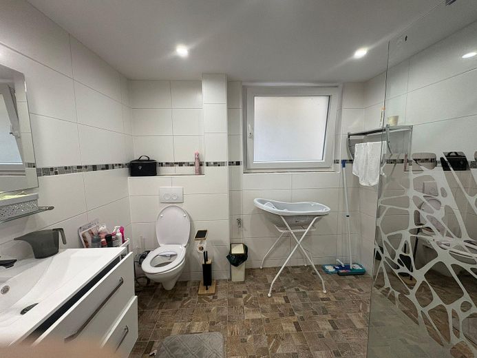Im Untergeschoss ist ein Heizungsraum mit einer modernen Öl-Zentralheizung (Fa. WOLF, Bj 2021). Das UG verfügt aufgrund der Hanglage über Tageslicht und ist beheizt. Das bewohnbare abgeschlossene UG hat 3 Zimmer (ca. 15m²), eine Küche, Aufstellraum und ein modernes Badzimmer mit begehbarer Dusche. Es dient als eine Anliegerwohnung, die auch z.Z. vermietet ist.