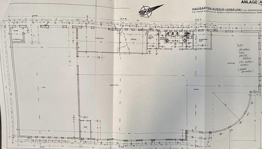 Die Gesamtfläche der komplett ebenerdigen Gewerbeimmobilie beträgt 1.300qm. Diese ist aktuell durch eine Brandschutzwand in 2 Bereiche aufgeteilt - ca. 350qm ebenerdige Lagerfläche mit 2 großen Rolltoren. Der zweite Bereich von ca. 950qm Fläche ist durch die Bauweise der Immobilie individuell teilbar. Auf dem gepflegten Gelände befinden sich ca. 22 Parkplätze.