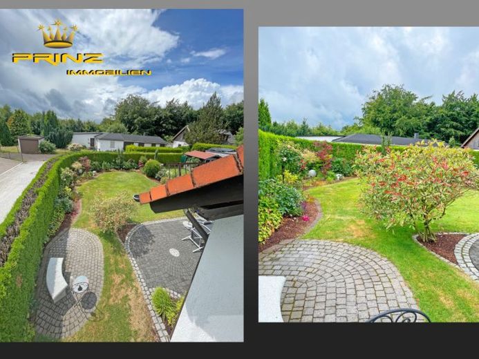 Über die Eingangsdiele im EG gelangt man in die gemütliche Küche mit Platz für den Essplatz zum Frühstücken und den sehr großzügigen und hellen Wohn- und Essbereich, der mit einer Glaswand mit Schiebetür von der Diele getrennt wurde. Von hier aus betritt man die schöne Terrasse und den liebevoll angelegten Garten. Ein offener Kamin bietet Gelegenheit, Wintertage in gemütlichem Ambiente zu genießen, für warme Sommertage ist hier eine Klimaanlage vorhanden. Im EG findet sich ferner das moderne Gästebad und die Marmortreppe ins OG.
