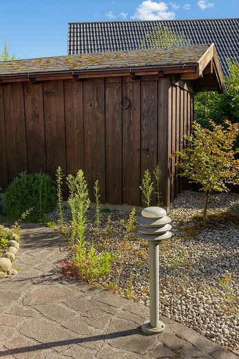 Der liebevoll angelegte Garten bietet Platz zum Entspannen, Spielen oder Feiern – eine private Oase mit idealer Südausrichtung und angenehmem Mikroklima. Ein Gartenhaus bietet zusätzlichen Stauraum für Geräte, Fahrräder oder Hobbys.
