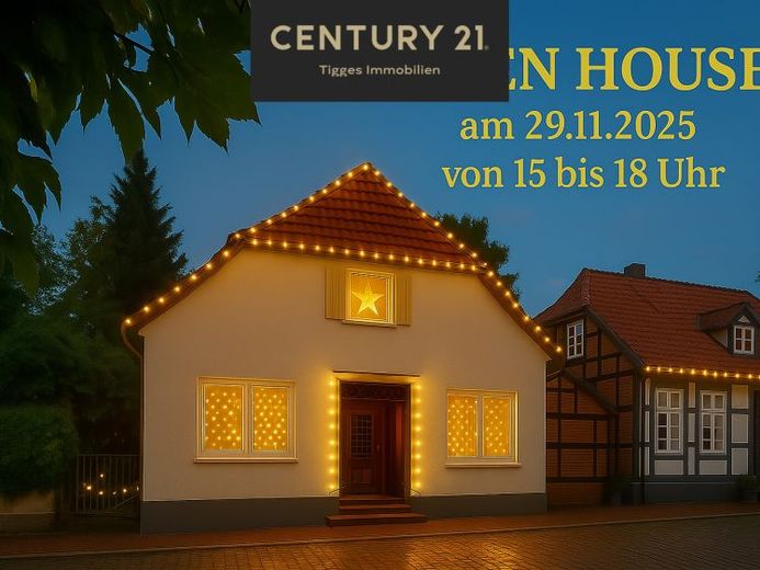 Erleben Sie den Zauber beim "Open House". Nutzen Sie die Gelegenheit und entdecken Sie dieses besondere Haus selbst! Das spezielle "Open House" findet am Freitag, den 29. November 2025 in der Zeit von 15:00 bis 18:00 Uhr, parallel zum Weihnachtsmarkt von Vilsen, statt. Innen erwarten Sie außerdem zahlreiche Aussteller aus Kunst, Handwerk und Genuss, die dem Haus schon jetzt festlichen Glanz verleihen. Ein Besuch lohnt sich in jedem Fall! Im bezaubernd dekorierten Garten verwöhnen wir Sie mit exquisiten Winterdrinks: Genießen Sie einen wärmenden Glüh-Gin oder einen prickelnden Hot-Aperol. Das Team von C21 Tigges Immobilien freut sich sehr darauf, Sie in diesem Weihnachtstraum willkommen zu heißen.