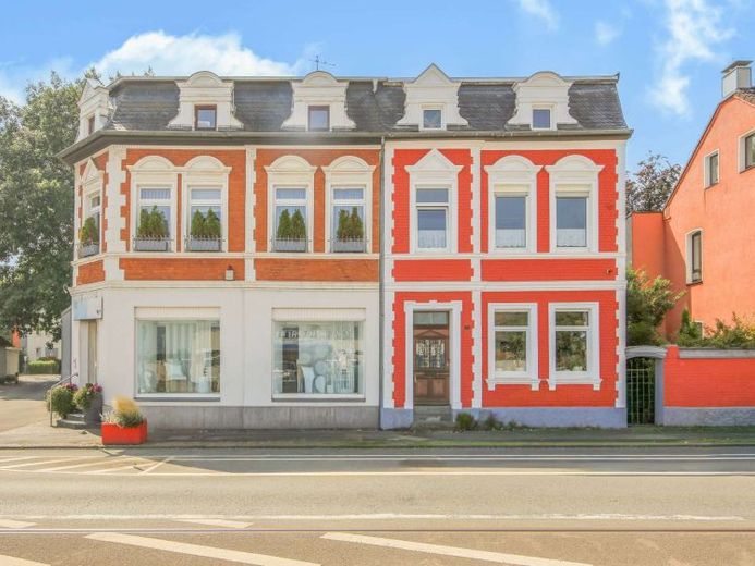 Das Ladenlokal befindet sich in einem Wohn- und Geschäftshaus, mit einer Wohneinheit und dem Ladenlokal. Der Zugang erfolgt direkt von der Duisburger Straße über eine kleine Treppe. Bereits beim Betreten öffnet sich der großzügige Verkaufs- und Ausstellungsraum, der das Herzstück der Immobilie darstellt. Dank der weitläufigen Schaufensterflächen wirkt der Raum besonders hell und einladend und ermöglicht eine hervorragende Sichtbarkeit nach außen. Damit sind ideale Voraussetzungen für die Präsentation von Waren, Mustern oder Dienstleistungen gegeben.