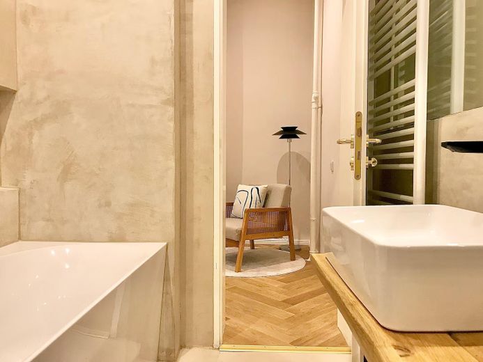 Die Wohnung wurde im Jahr 2024 hochwertig und umfassend saniert. Der private Eingang über den begrünten Innenhof verleiht der Wohnung einen besonderen Charakter mit Townhouse-Feeling.