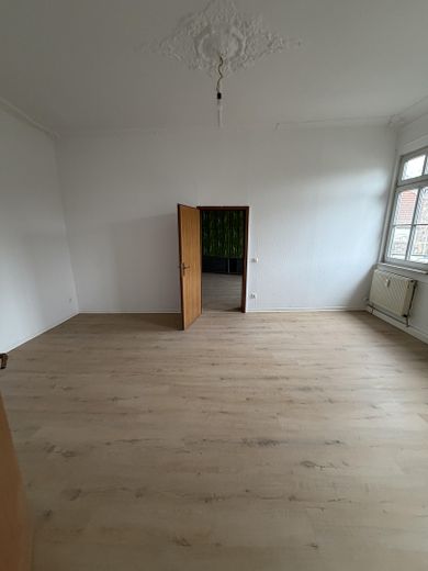 Die Wohneinheit erstreckt sich über drei helle Zimmer, die durch großzügige Fensterfronten und eine freundliche Atmosphäre überzeugen. Die Raumaufteilung ist klassisch geschnitten, wobei ein zwei Durchgangszimmer das Herzstück der Wohnung bilden. Diese lassen sich flexibel nutzen – etwa als Esszimmer oder als kombinierter Wohn- und Arbeitsbereich.