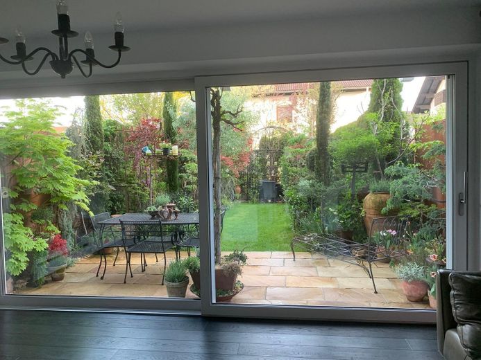 Für Ihre Privatsphäre sorgen sowohl im vorderen als auch im hinteren Garten Bäume und eine immergrüne Hecke.