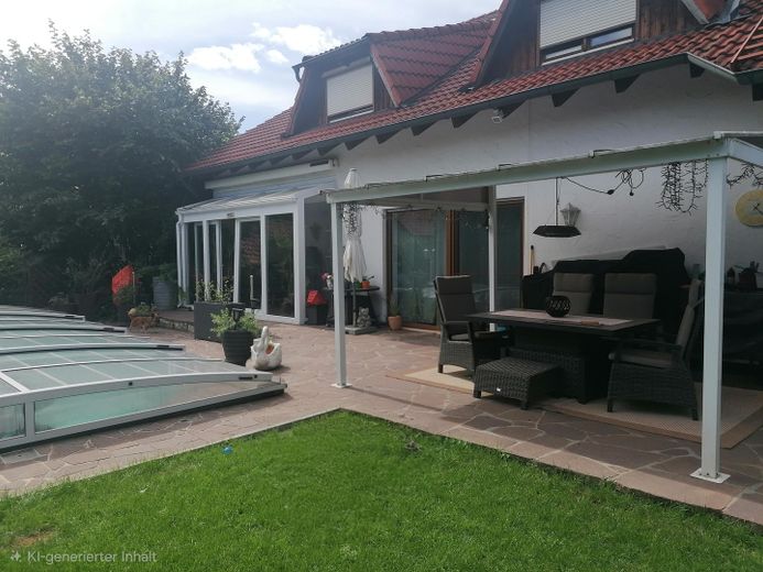 Durch die Lage der Wohnung und Garage, sie ist auch durch die Garage und nicht nur durch den Hauseingang betretbar, ist die Wohnung separat und bietet das Feeling eines Einfamilienhauses. Seit Bezug 2016 wurde die Wohnung umfassend modernisiert Küche,Bad, Gäste WC kompl. neu, alle Fussböden und teilweise Decken durch Heizungserneuerung. Einbau 3 fach verglaster Terrassenschiebeelemente, Anbau Wintergarten, Pool , Kamin, Heizofen, Schuppen, flache einschienige Schiebehalle, Gartenanlage u.a.