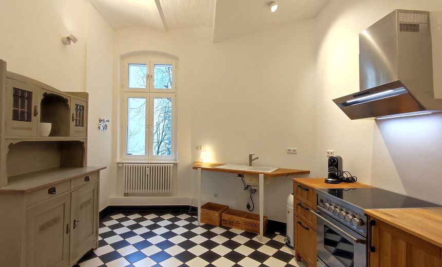Riehmers Hofgarten: beautiful, listed, green grounds dating back to the 19th century. Great flat with east-west orientation. Away from traffic, you live centrally but quietly with a view from the balcony. The residential complex is famous among architecture fans and is valued for its beauty. Living here is something special.