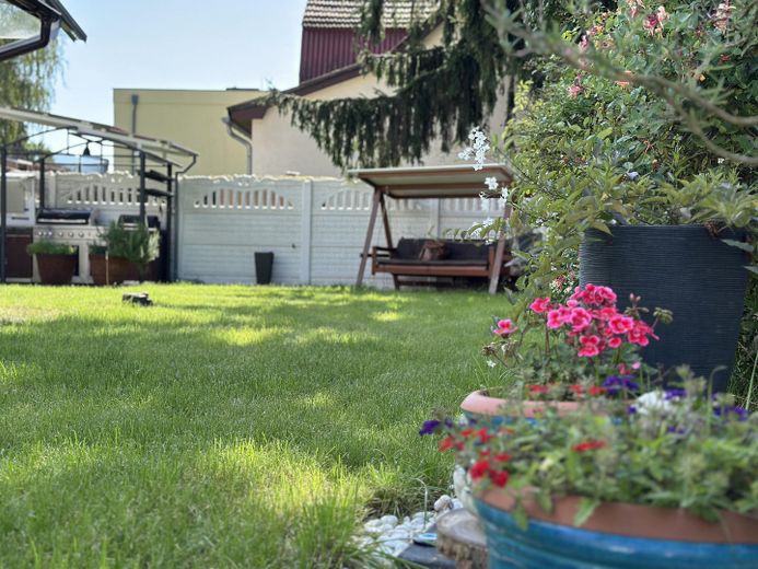 Angeboten wird ein knapp 400 m² großes Grundstück, bebaut mit einem Einfamilienreihenhaus, sowie ein Anbau, der bereits mit einem Appartement ausgebaut ist, sowie ein vorgesehenes 2. Appartement .